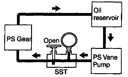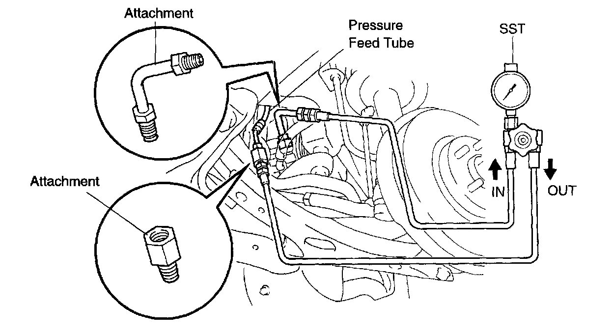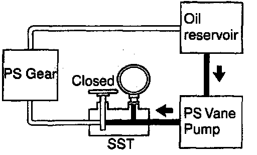 f. With the engine idling, close the valve of the SST and observe the reading on the SST.