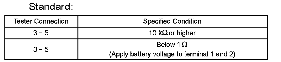1. Using an ohmmeter, measure the resistance between the terminals.
