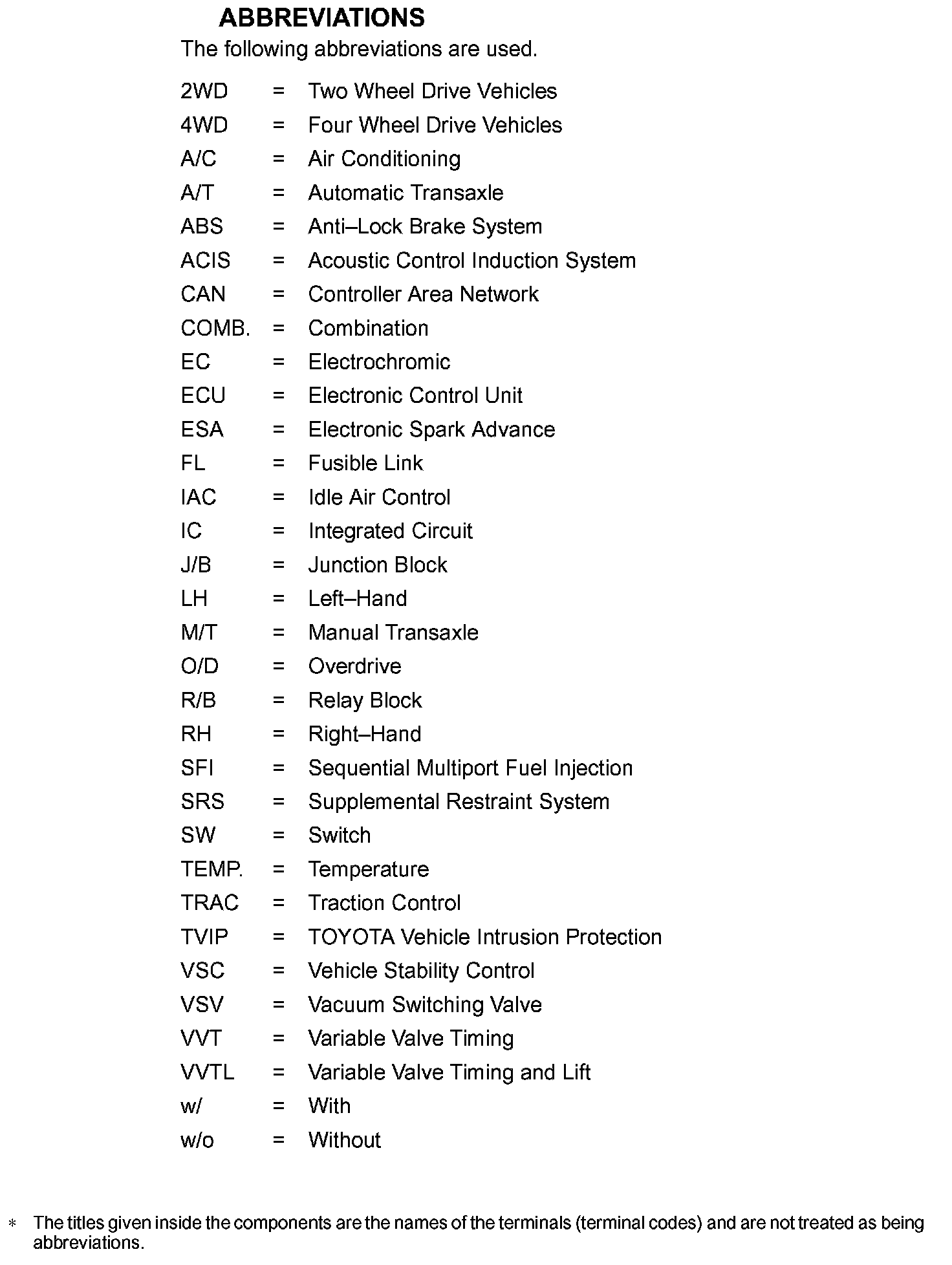 Abbreviations Used Within Diagrams