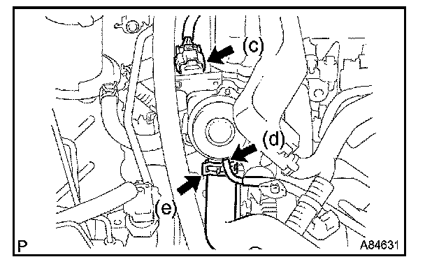 b. Remove the 2 bolts, then remove the pressure sensor (turbo pressure sensor).
