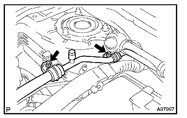 b. Remove the 2 nuts, then remove the cooler refrigerant suction hose No.1.