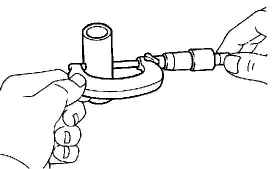 Using a micrometer, measure the piston diameter at right angles to the piston pin hole, and at the piston 12 mm (0.472 inch) from the piston head.