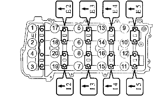 Camshaft bearing Cap No.1 19 Nm (194 kgf-cm, 14 ft. lbs.)