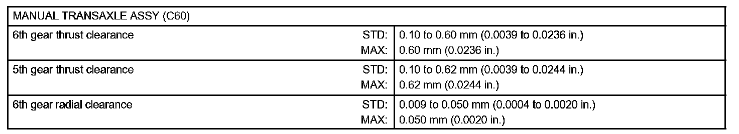 Manual Transmission / Transaxle-Service Data: