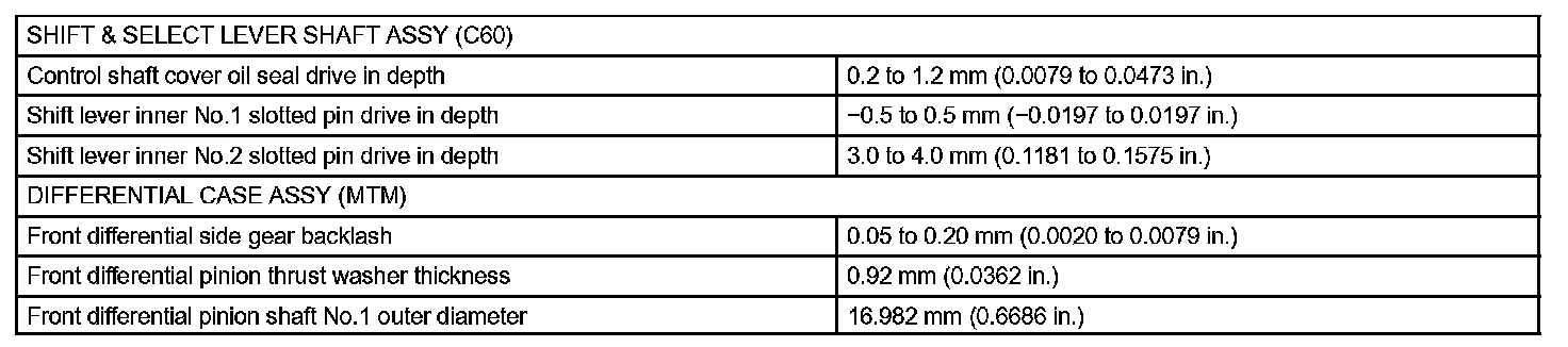 Manual Transmission / Transaxle-Service Data (Part 2):