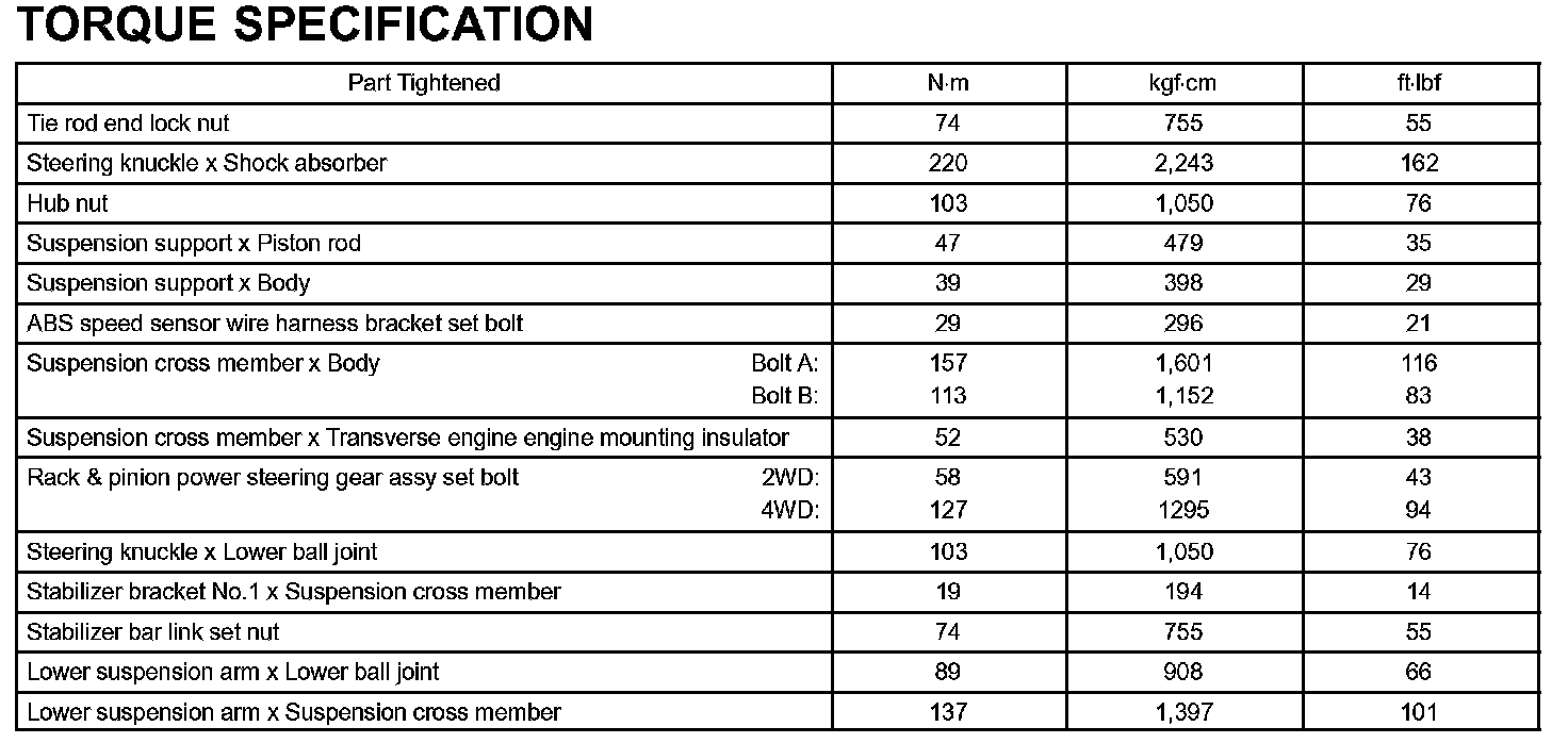 Front Suspension-Torque Specification: