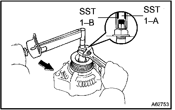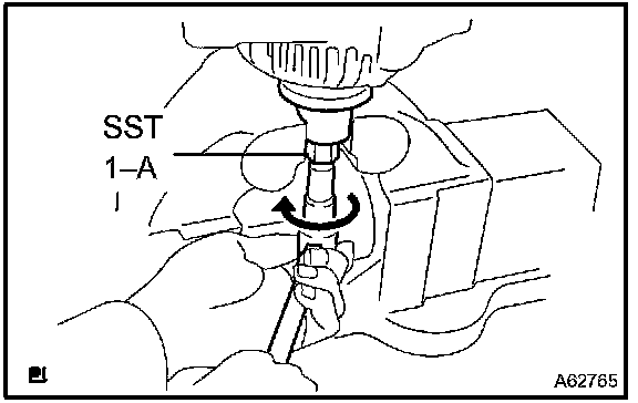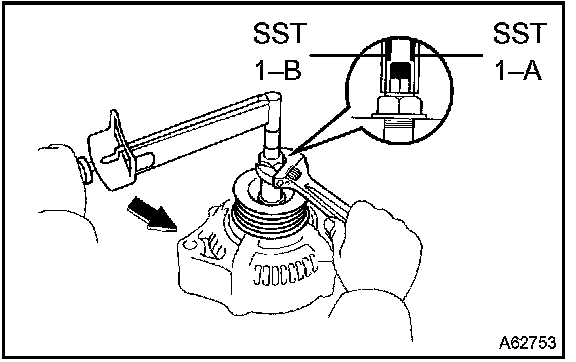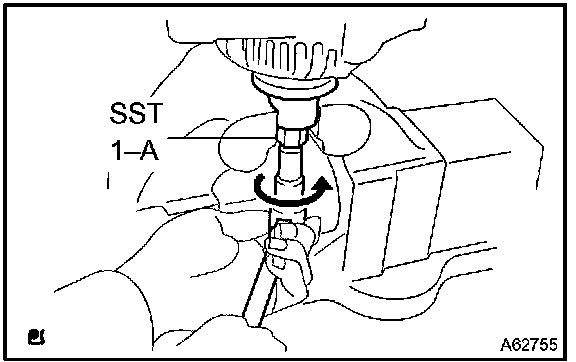 a. Hold SST 1-A with a torque wrench, then tighten SST 1-B counterclockwise to the specified torque.