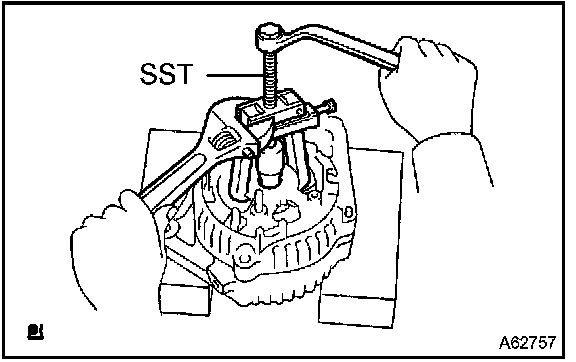 b. Using SST, remove the generator bearing cover (outside) and bearing.