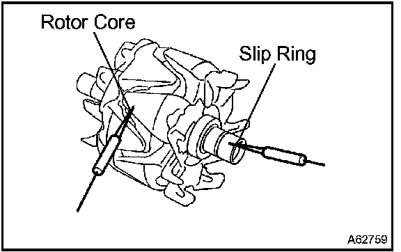 2. Using an ohmmeter, measure the resistance between the slip ring and rotor.