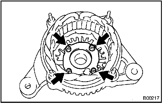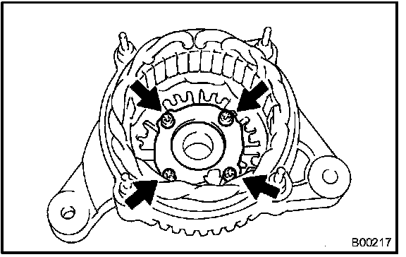 a. Remove the 4 screws, then remove the generator holder with rectifier.