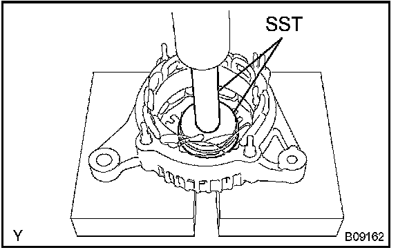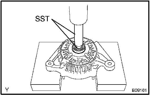 b. Using SST and a press, push the bearing out.