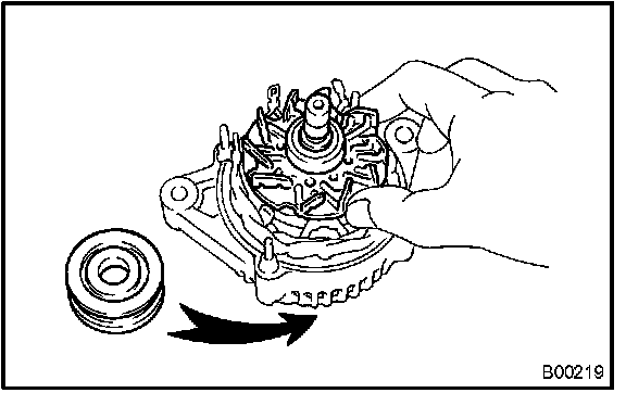 a. Install the generator pulley onto the rotor shaft by tightening the pulley nut by hand.