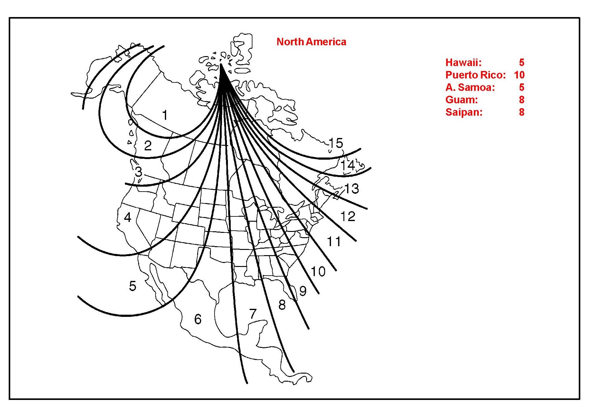 2. Push simultaneously both the right and left personal light switches for longer than 5 seconds until the zone number (1-15) appears on the display. Then push the right or left switch to select the number of the zone where the vehicle is located. See the map below for zone reference.