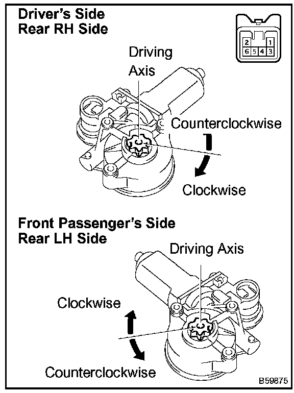 - The passenger's side and rear LH regulator motors should be inspected in the same procedure.