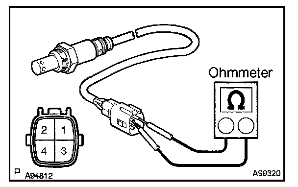 INSPECT HEATED OXYGEN SENSORa. Check the resistance. (Bank 1 Sensor 1)