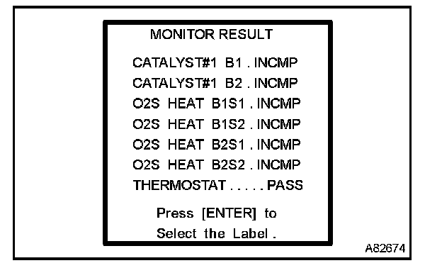 The Monitor Result is part of the monitoring for malfunctions in emission related components such as the thermostat, catalytic converter, and evaporative emission system. The various states (Test Items) of the components are monitored by the ECM. The Test Item values (Test Values) can be read using a hand-held tester or OBD II scan tool.