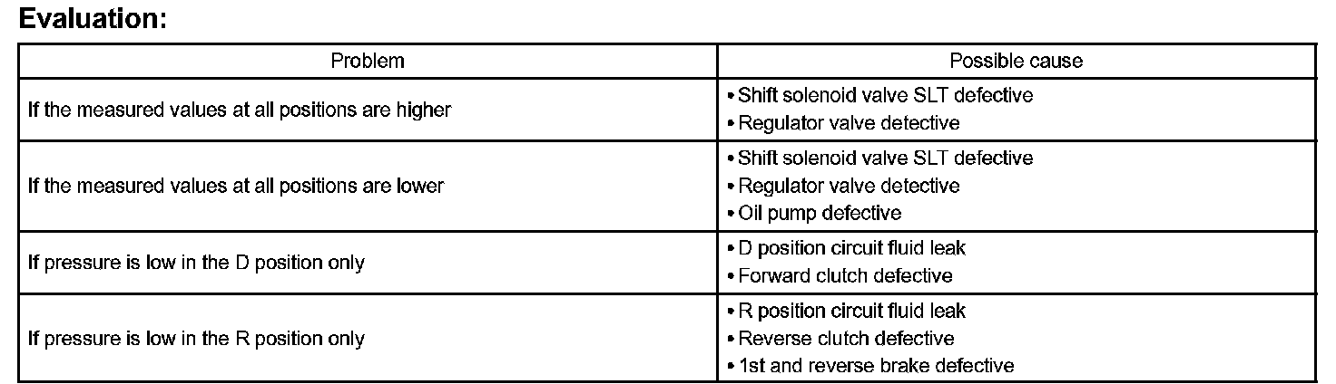 - Perform the test at the normal operating ATF (Automatic Transmission Fluid) temperature 50 to 80 degrees C (122 to 176 degrees F).