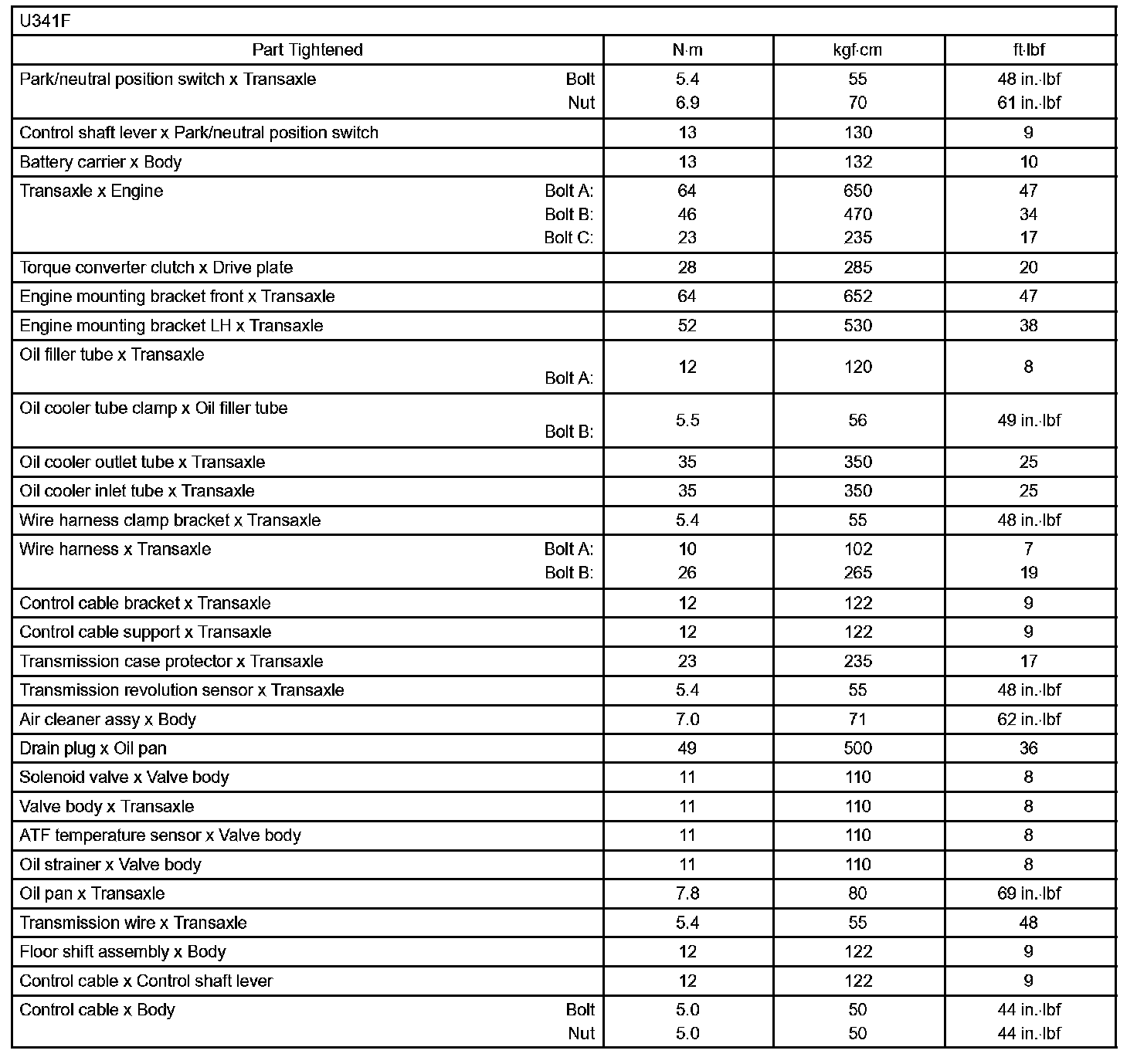 Automatic Transmission / Transaxle-Torque Specification: