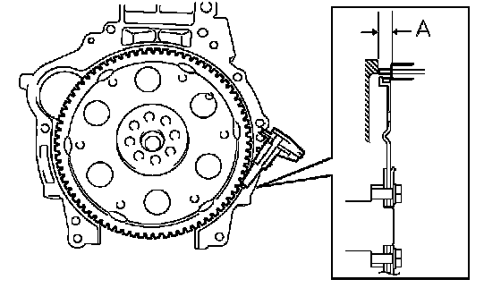 a. Using vernier calipers, measure the dimension A between the transaxle fitting part of the engine and the converter fitting part of the drive plate.