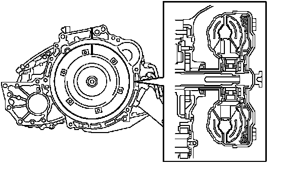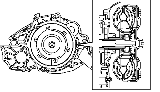 d. Match the 2 marks on the case and the converter and fit the splined part of the input shaft to the spline part of the turbine runner.