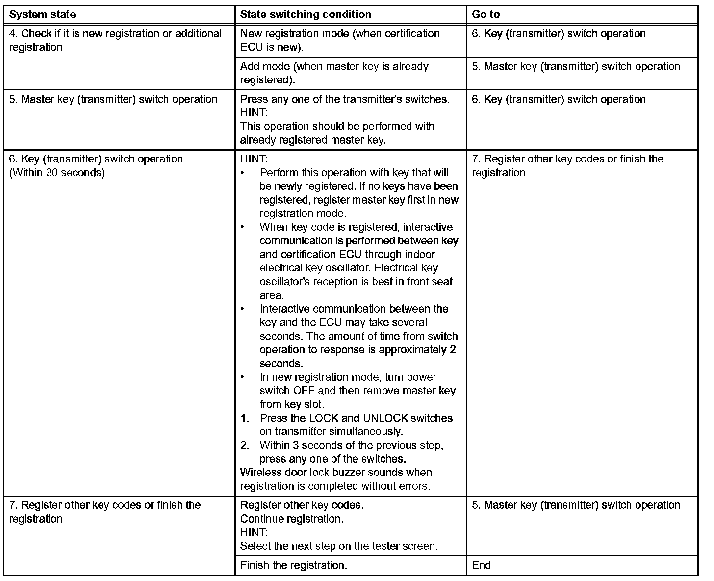 - When registering a transmitter, do not have any other transmitters close to the transmitter being registered. The certification ECU may be unable to recognize which transmitter is sending signals.