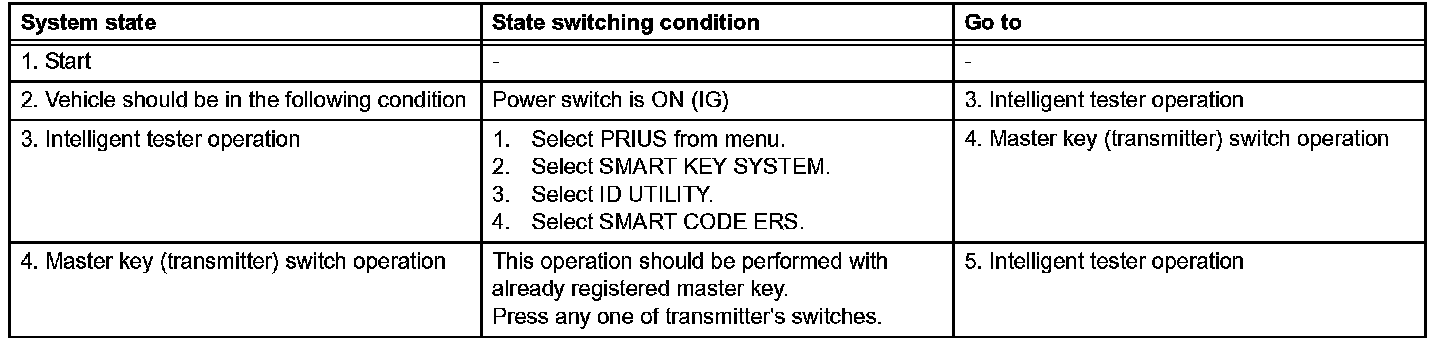 - A brief outline of procedures for key code registration is shown above. For more detailed information, please refer to the intelligent tester screen's instructions.
