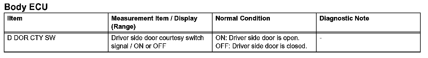 READ DATA LISTHINT: Using the intelligent tester's DATA LIST allows switch, actuator and other item values to be read without removing any parts. Reading the DATA LIST early in troubleshooting is one way to save time.