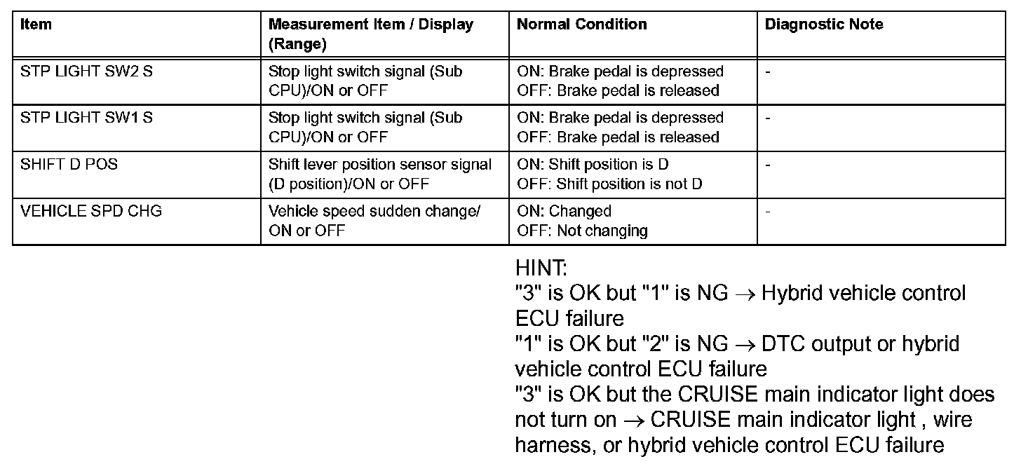 HINT: Using the intelligent tester's DATA LIST allows switch, actuator and other item values to be read without removing any parts. Reading the Data List early in troubleshooting is one way to save time.