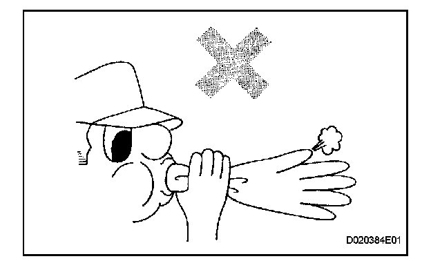 - After removing the service plug grip, do not operate the power switch as it may damage the hybrid vehicle control ECU.