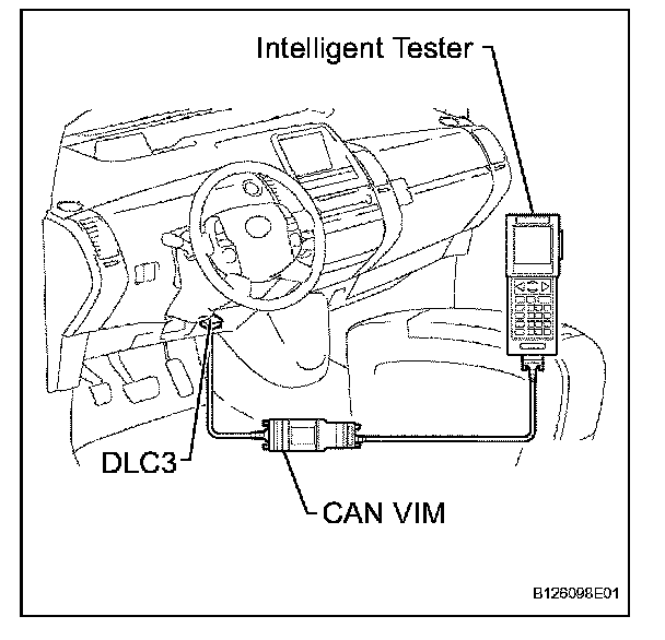 Connect the cable of the intelligent tester to the DLC3, turn the power switch ON (IG) and attempt to use the tester. If the display indicates that a communication error has occurred, there is a problem either with the vehicle or with the tester.