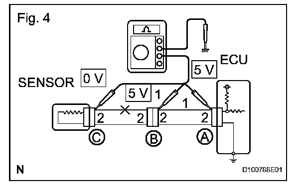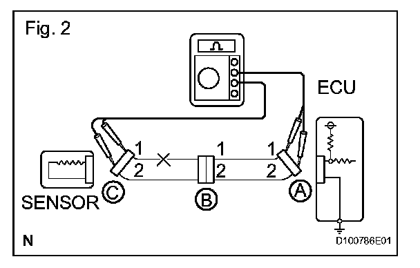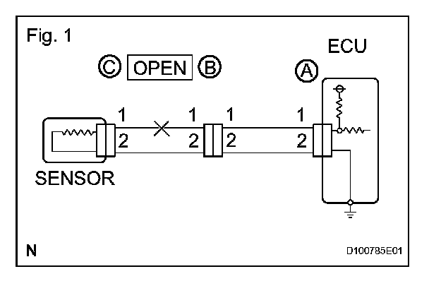 CHECK FOR OPEN CIRCUITa. For an open circuit in the wire harness in Fig. 1, check the resistance or voltage, as described.