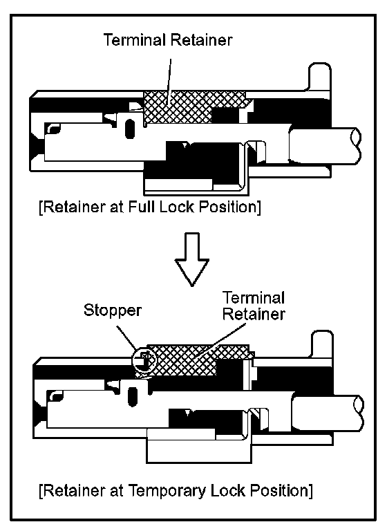 3. Insert the terminal with terminal retainer in the temporary lock position.