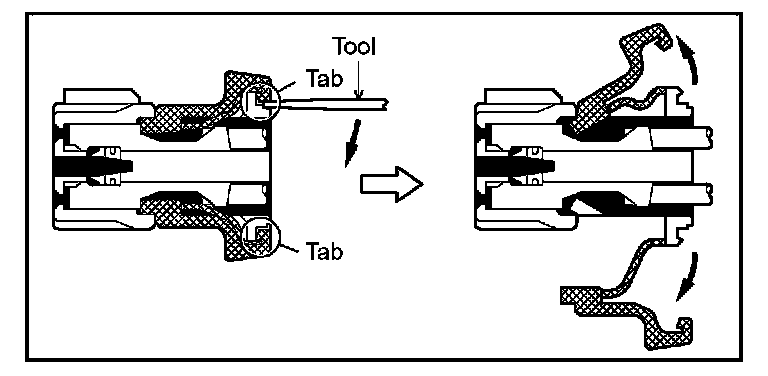 a. Locking device must be disengaged before the terminal locking clip can be released and the terminal removed from the connector.