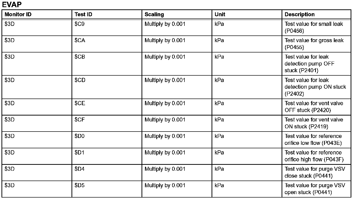 If you use a generic scan tool, multiply the test value by the scaling value listed.
