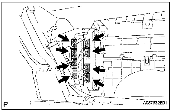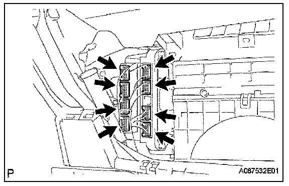 b. Disconnect the 4 hybrid vehicle control ECU connectors.