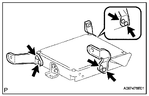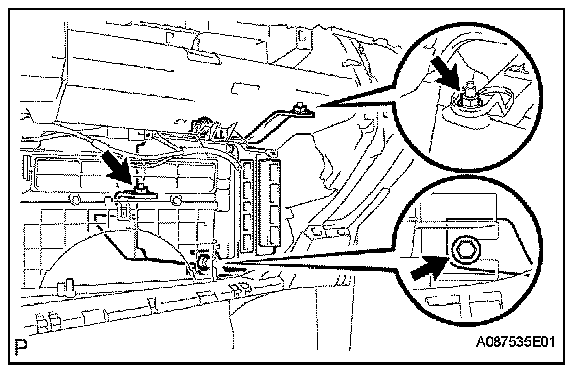 c. Remove the 2 nuts and bolt, and ECM with bracket.