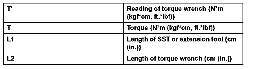 1. Use the formula below to calculate special torque values for situations where SST or an extension tool is combined with the torque wrench.