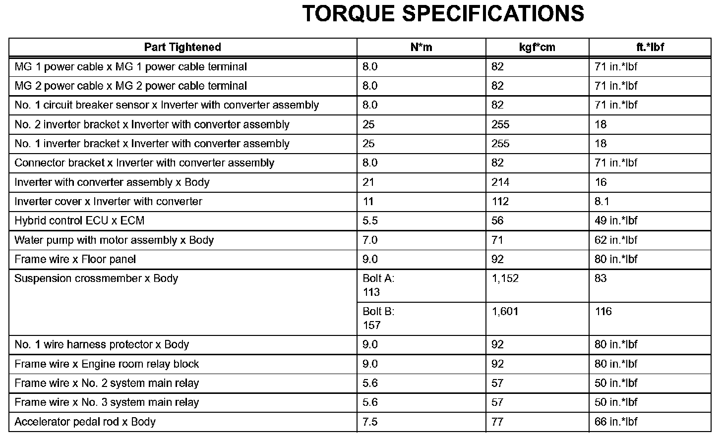 Hybrid Vehicle Control-Torque Specifications: