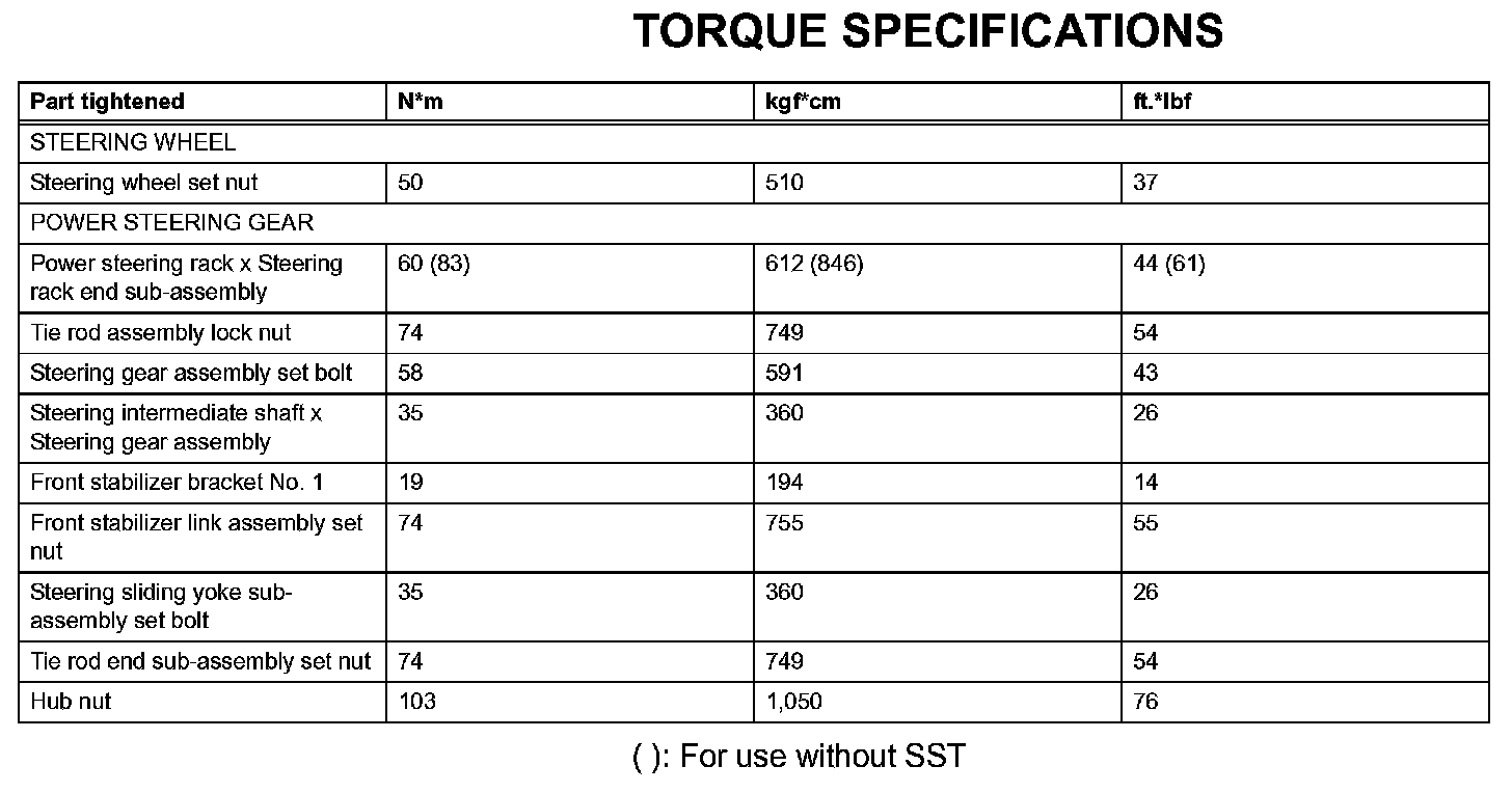 Power Steering-Torque Specifications: