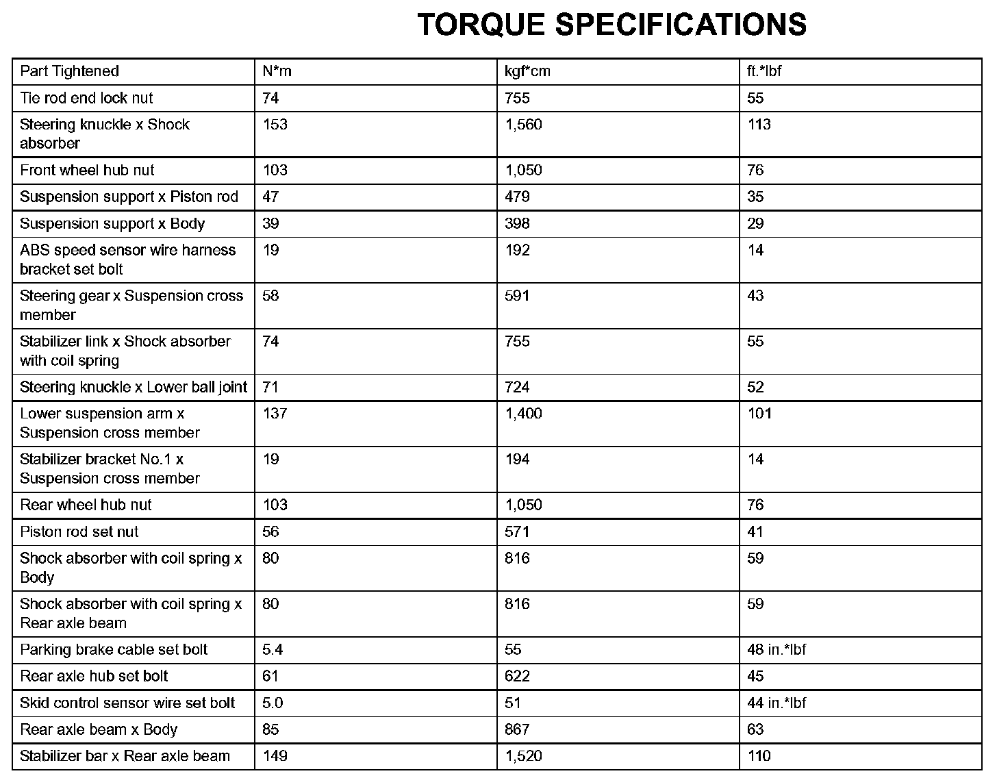 Suspension-Torque Specifications: