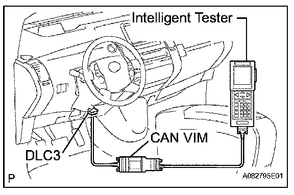 HINT: Connect the cable of the intelligent tester (with CAN VIM) to the DLC3, turn the power switch ON (IG) and attempt to use the intelligent tester. If the display informs that a communication error has occurred, there is a problem either with the vehicle or with the tester.