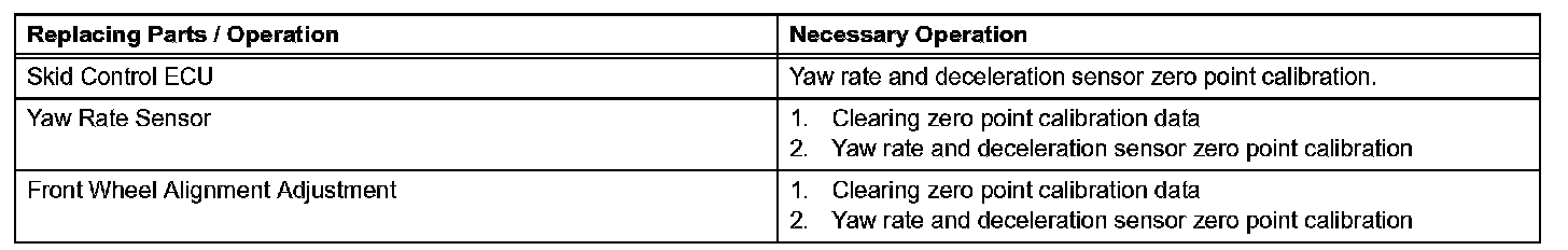a. After replacing components relating to the VSC or performing "Front wheel alignment adjustment", clear and read the sensor calibration data.