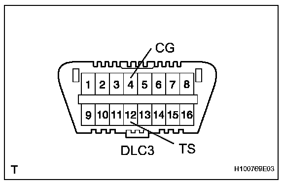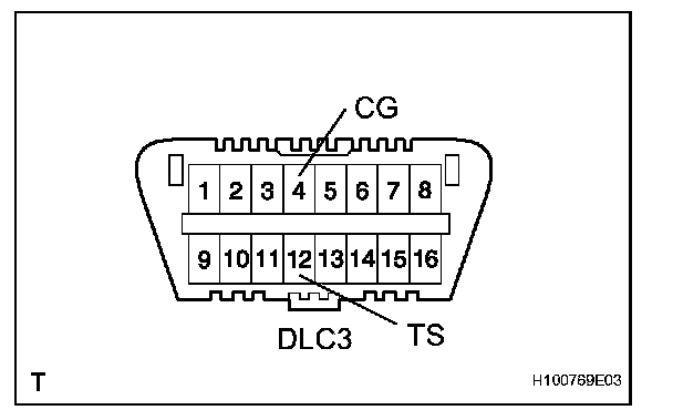 2. Using SST, connect terminals 12 (TS) and 4 (CG) of the DLC3.