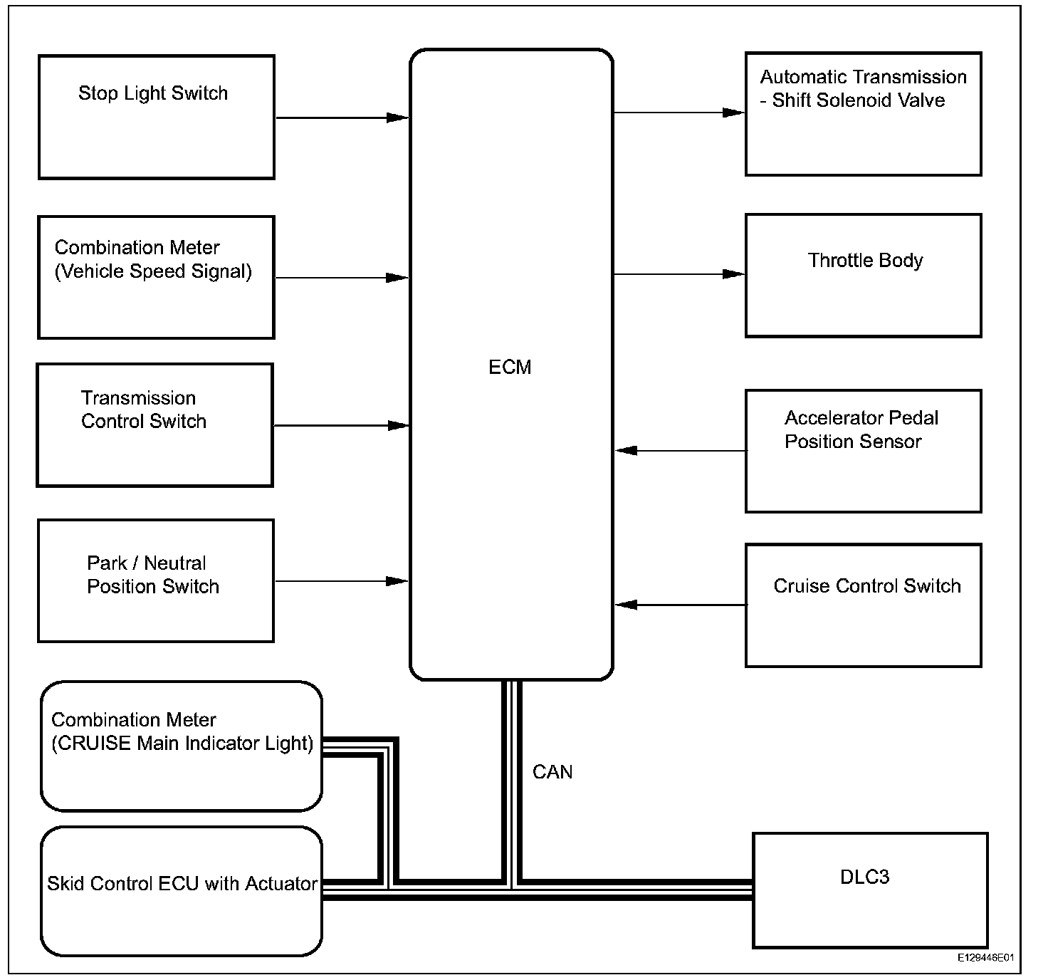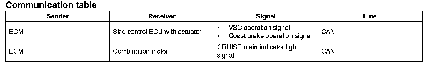 - The ECM receives signals such as ON-OFF, SET / COAST, RESUME / ACCEL, and CANCEL from the cruise control switch.
