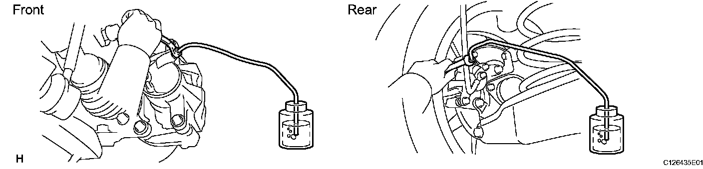 (1) Connect a vinyl tube to the bleeder plug at the right front wheel or the right rear wheel.