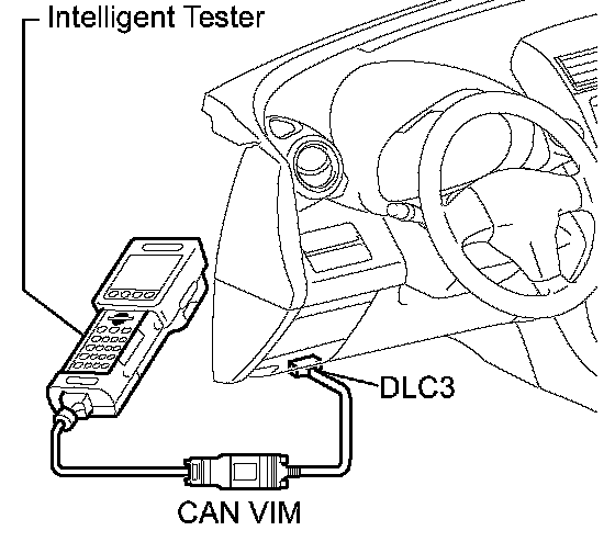 b. Connect the intelligent tester to the DLC3, and turn the ignition switch on (IG).