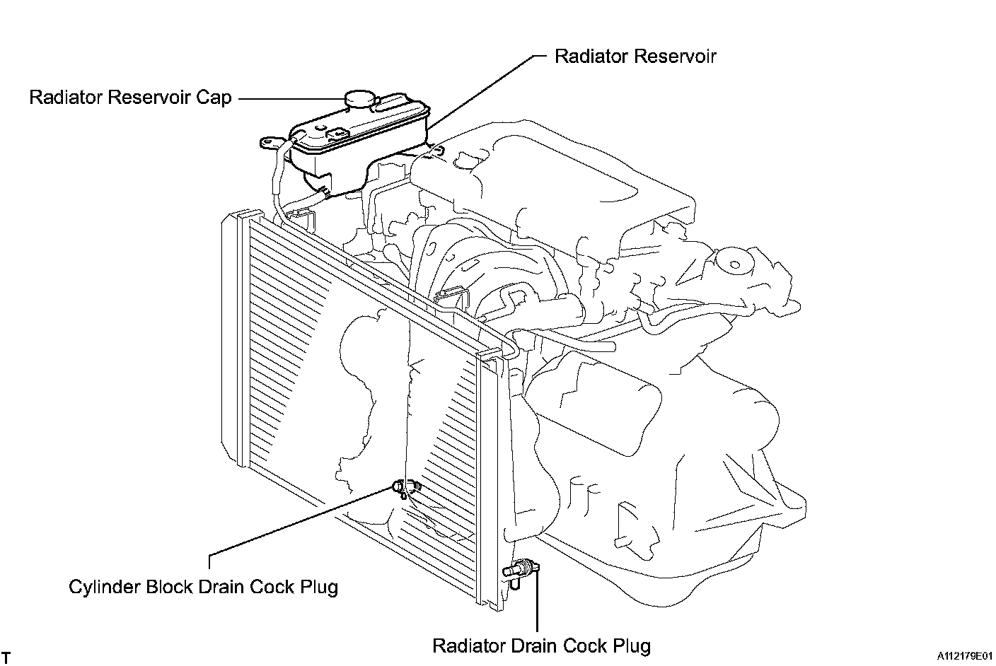 ^ Immediately after starting the engine, if the radiator reservoir does not have any coolant, perform the following: 1) stop the engine, 2) wait until the coolant has cooled down, and 3) add coolant until the coolant is filled to the B line.