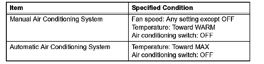 (1) Set the air conditioning as follows while warming up the engine.