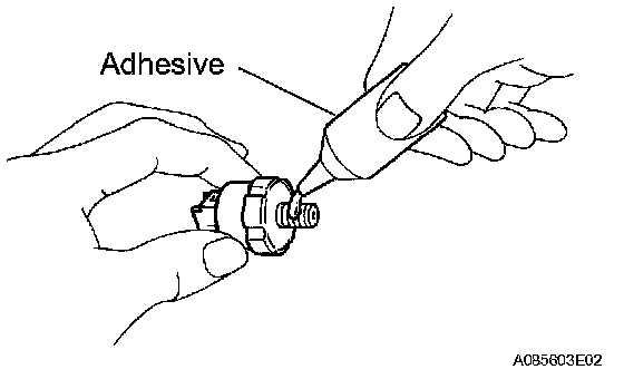 f. Apply adhesive to 2 or 3 threads of the oil pressure switch.