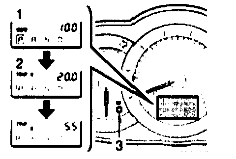 1. Turn the ignition key to the "OFF" position with the trip meter "A" reading shown.